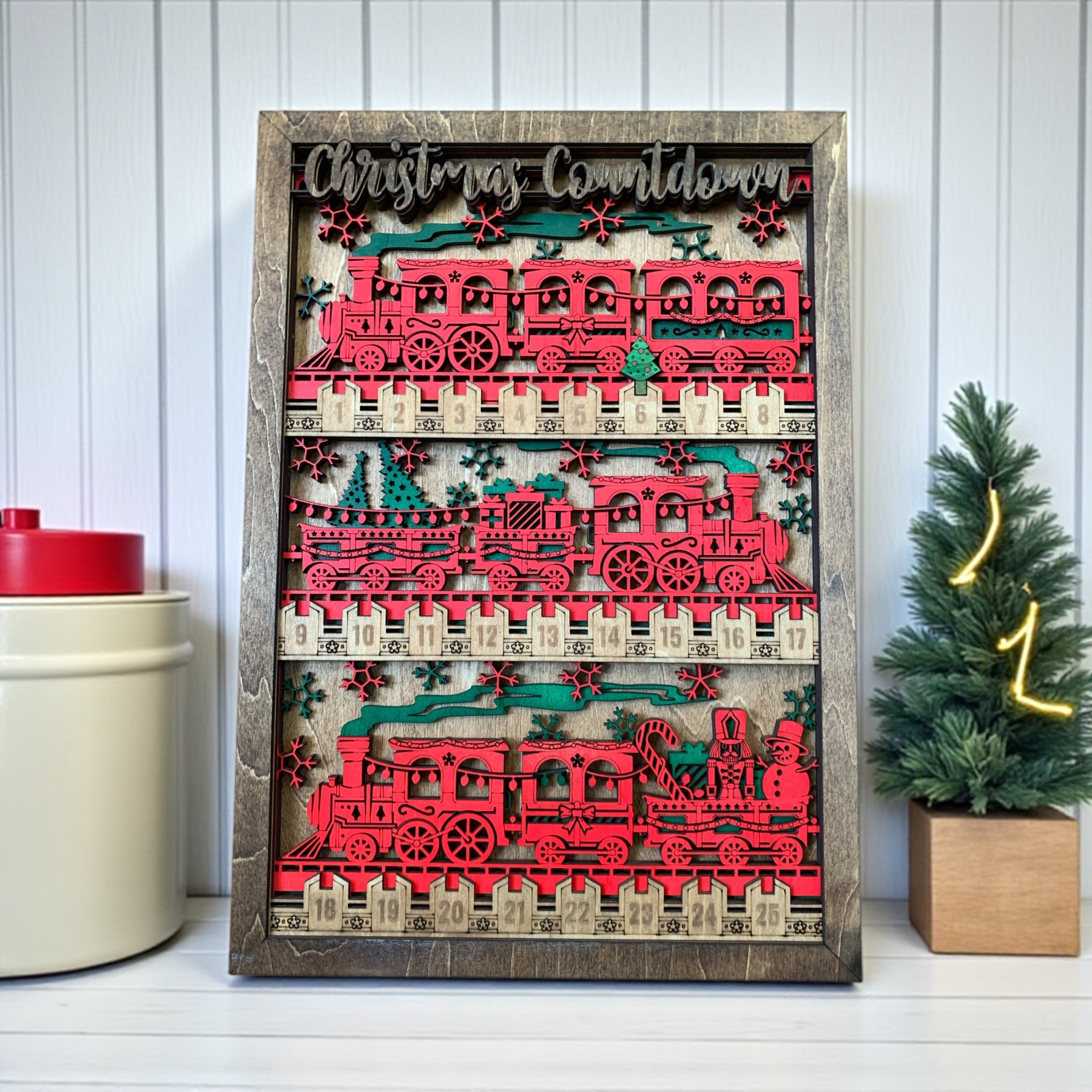 Hop aboard the Christmas train with this handmade wood advent calendar! Get in the holiday spirit as you count down the days with a festive train theme. Simply move the Christmas tree marker to adjust the dates.